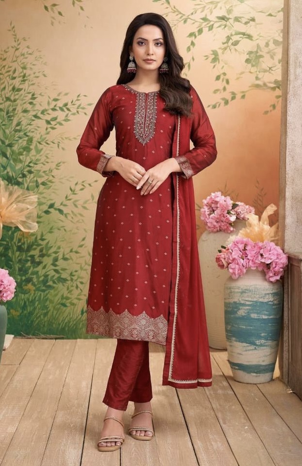 Exude refined elegance with our Maroon Luxe Suit — a meticulously tailored straight-cut design in a deep, luxurious maroon shade. Crafted from premium Rangeela fabric, this ensemble pairs beautifully with a rich Banarasi dupatta, creating a perfect balance of classic charm and modern sophistication.