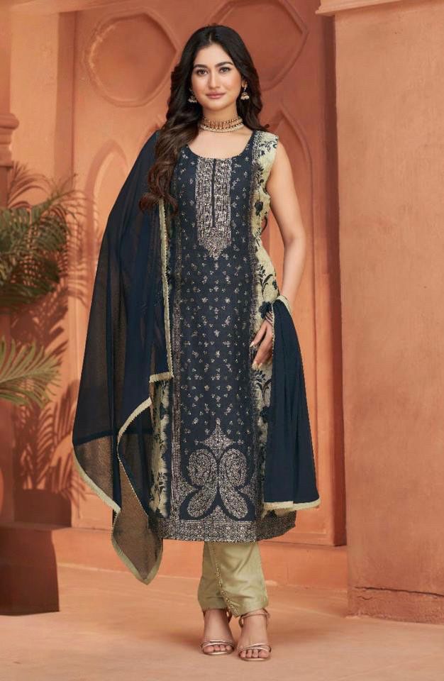 Step into timeless elegance with this Regal Dark Green Benaras Set, featuring a luxurious straight-cut Benaras silk top adorned with rich traditional weaving. The deep green hue adds a royal touch, perfectly balanced by a soft chiffon dupatta that lends grace and fluidity to the ensemble. Ideal for festive gatherings, wedding functions, or evening celebrations, this outfit is where tradition meets sophistication.