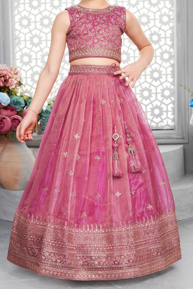 Style: Organza Crop Top with Zari Work and Neckline Mirror Detailing